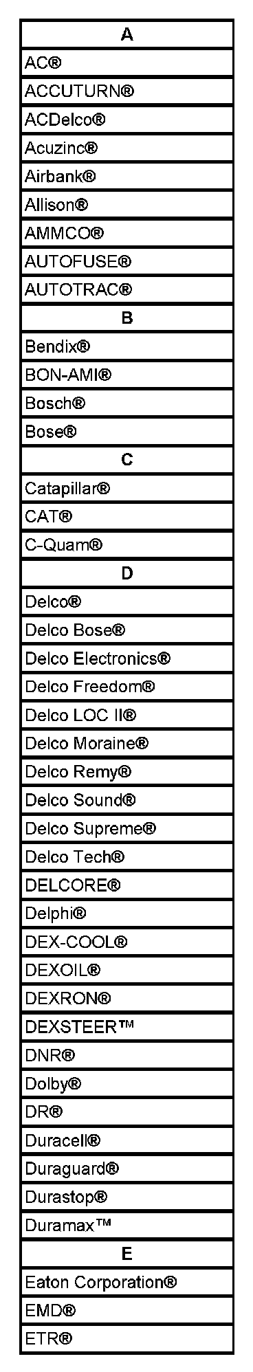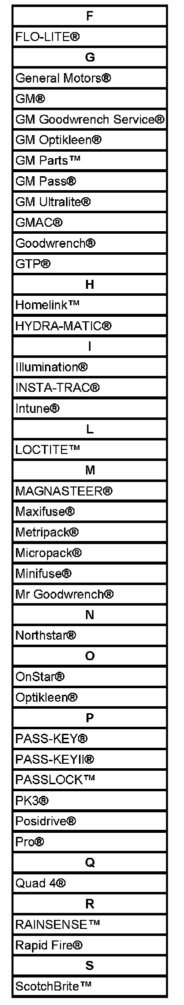 Listed are Registered Trademarks ((R)) or Non-Registered Trademarks ((TM)) which may appear in this service data.