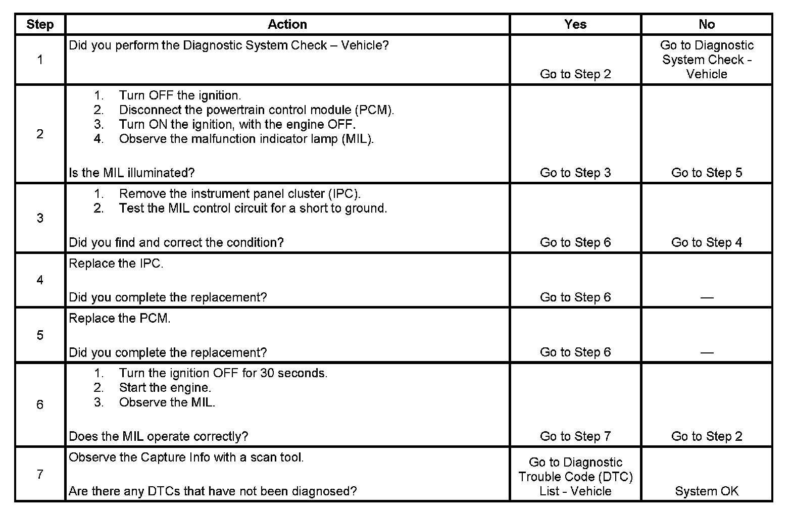 2. This step determines if the condition is with the MIL control circuit or the PCM.