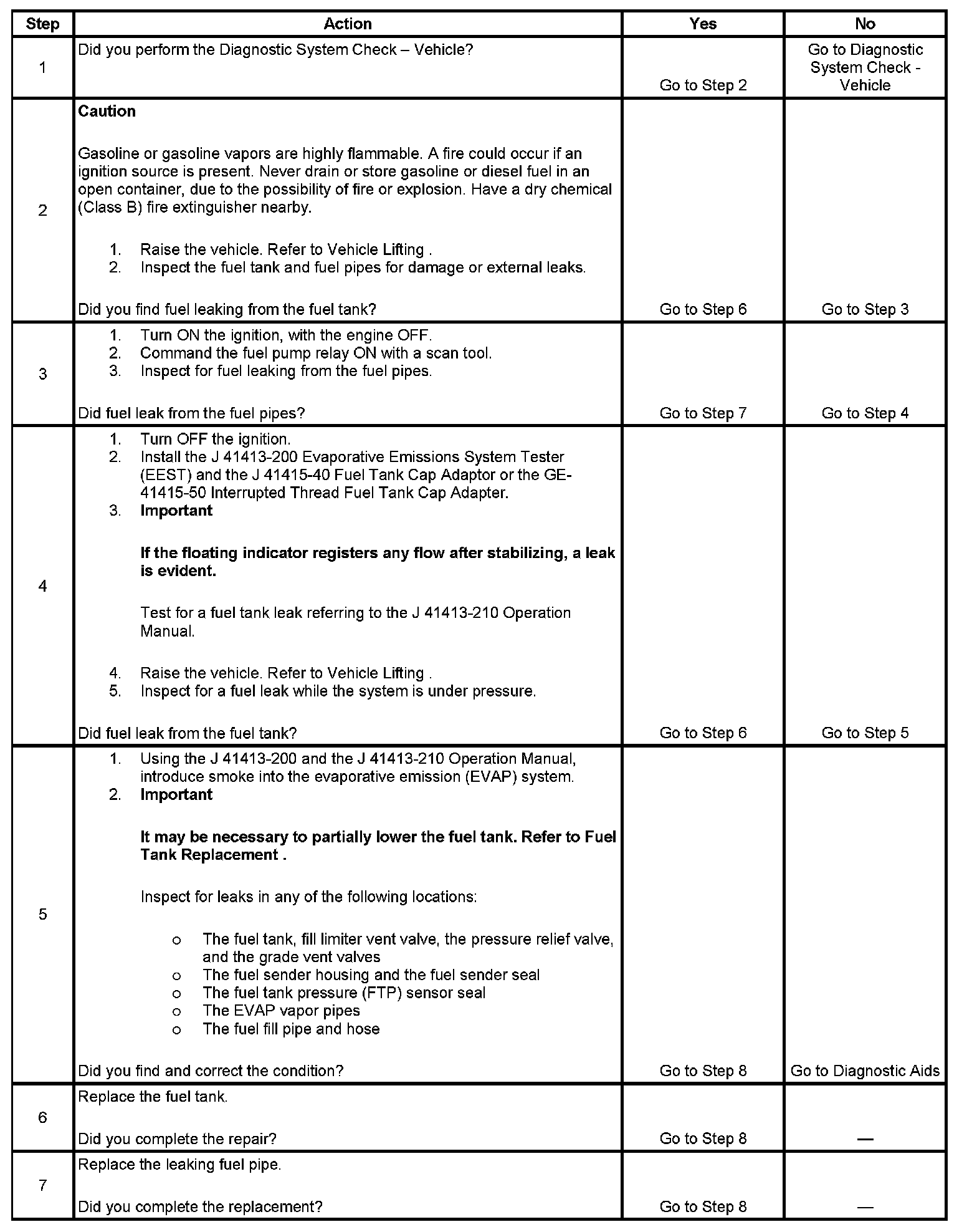 4. This step tests for fuel leaks below the fuel tank fuel level.