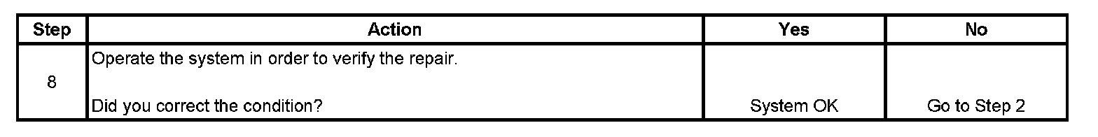 The numbers below refer to the step numbers on the diagnostic table.