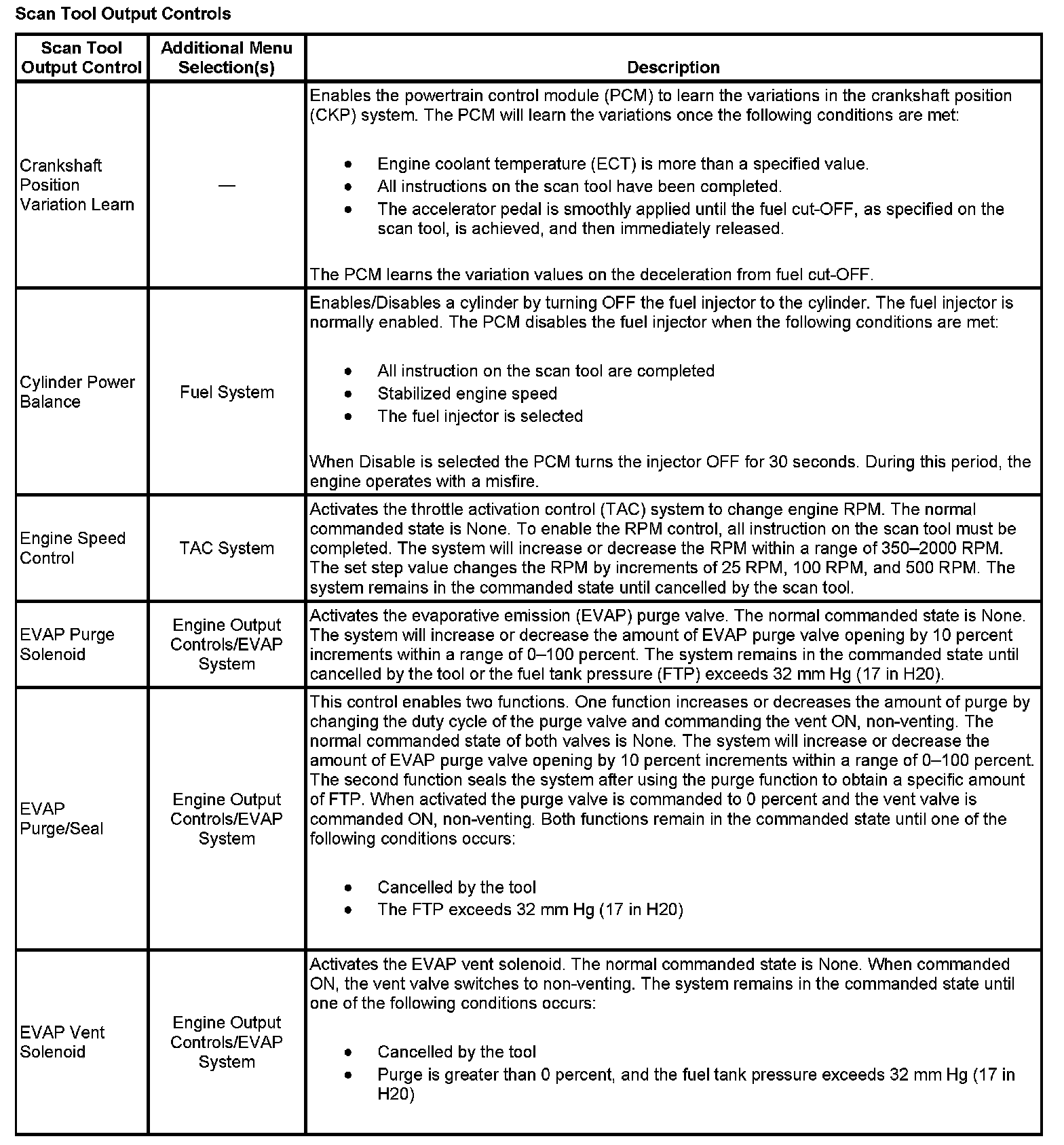 Scan Tool Output Controls