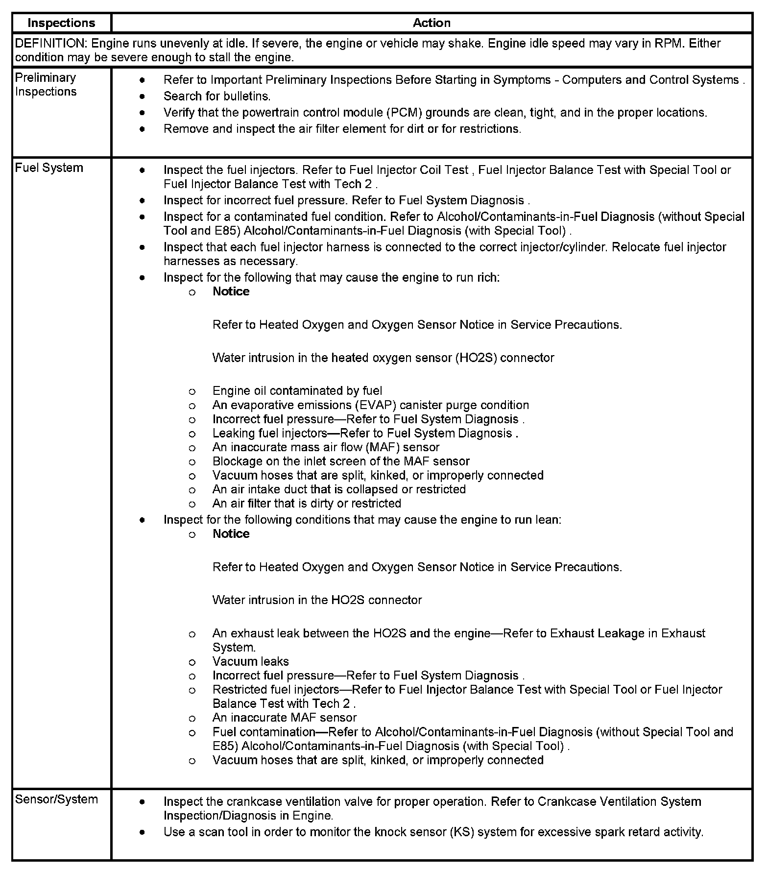 Rough, Unstable, or Incorrect Idle and Stalling