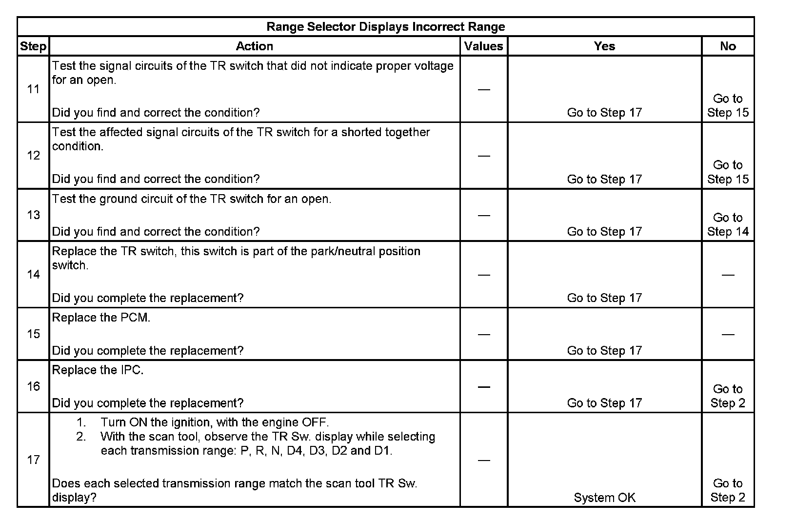 5. This step tests the TR switch wiring for an open or the lack of the signal voltage from the PCM.