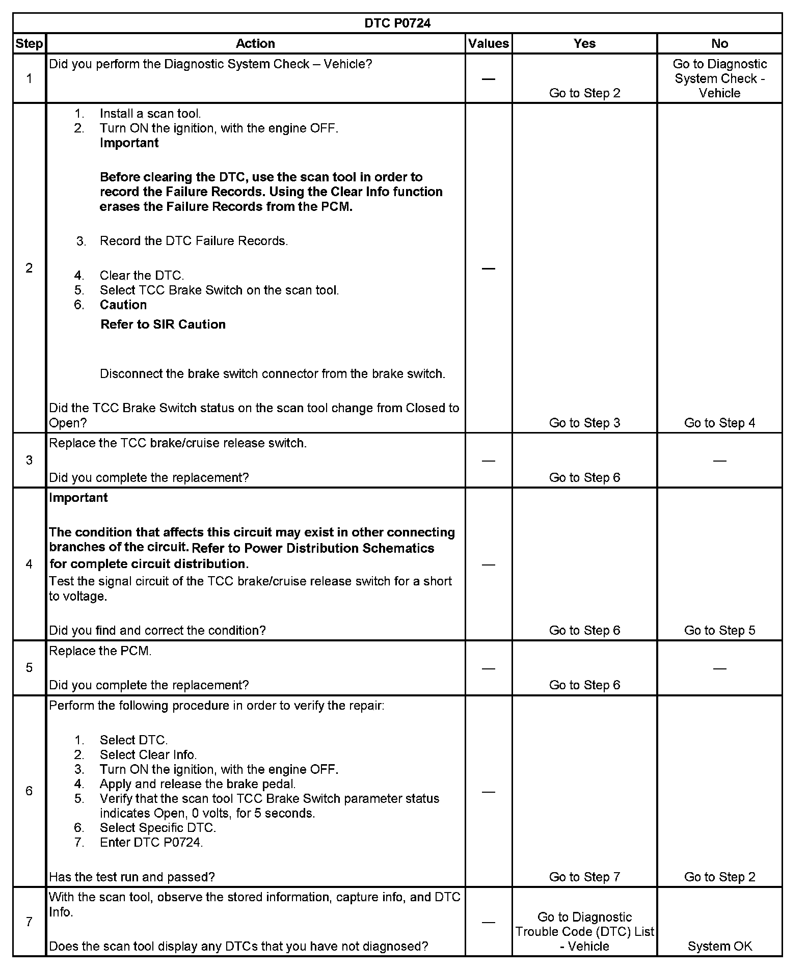 Inspect for ABS DTCs. A faulty ABS condition may contribute to setting DTC P0724.