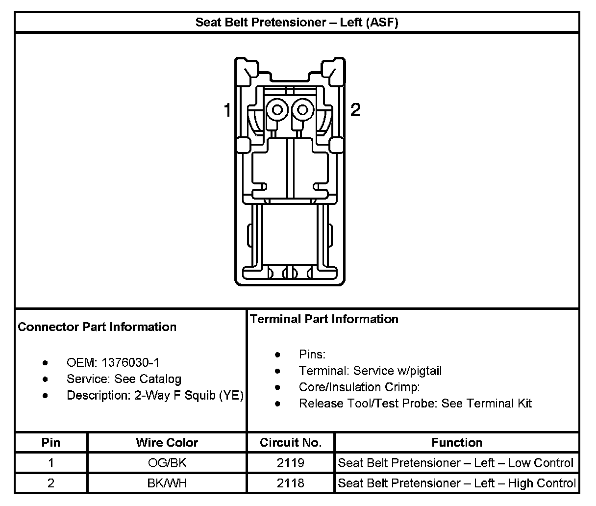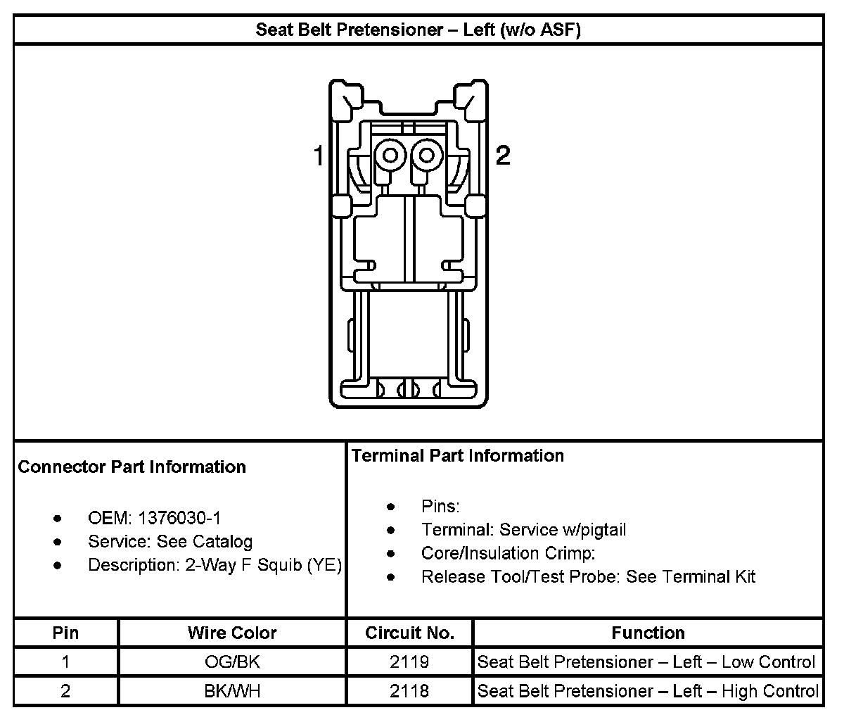 Seat Belt Pretensioner - Left (Without RPO Code ASF):