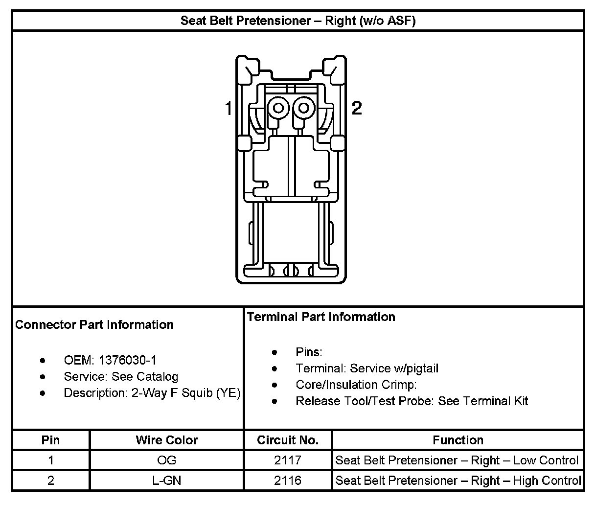 Seat Belt Pretensioner - Right (Without RPO Code ASF):
