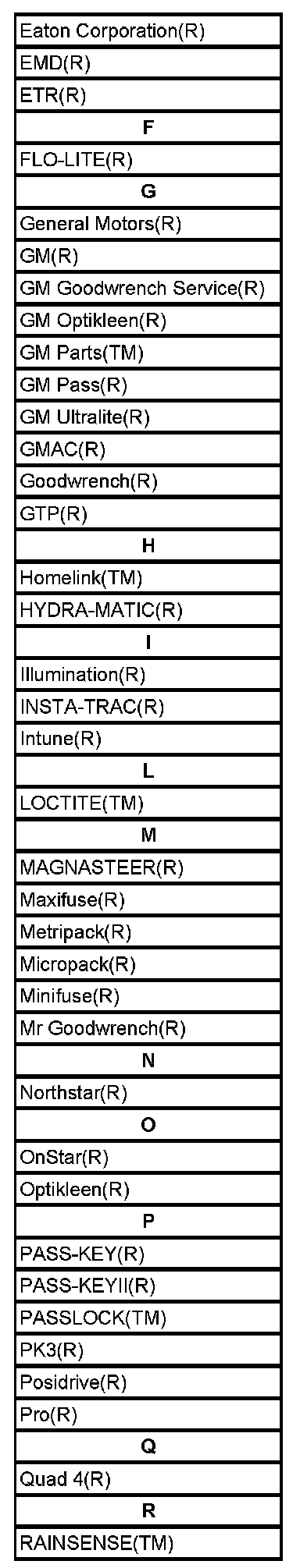 Listed below are Registered Trademarks ((R)) or Non-Registered Trademarks ((TM)) which may appear in this Service Data.