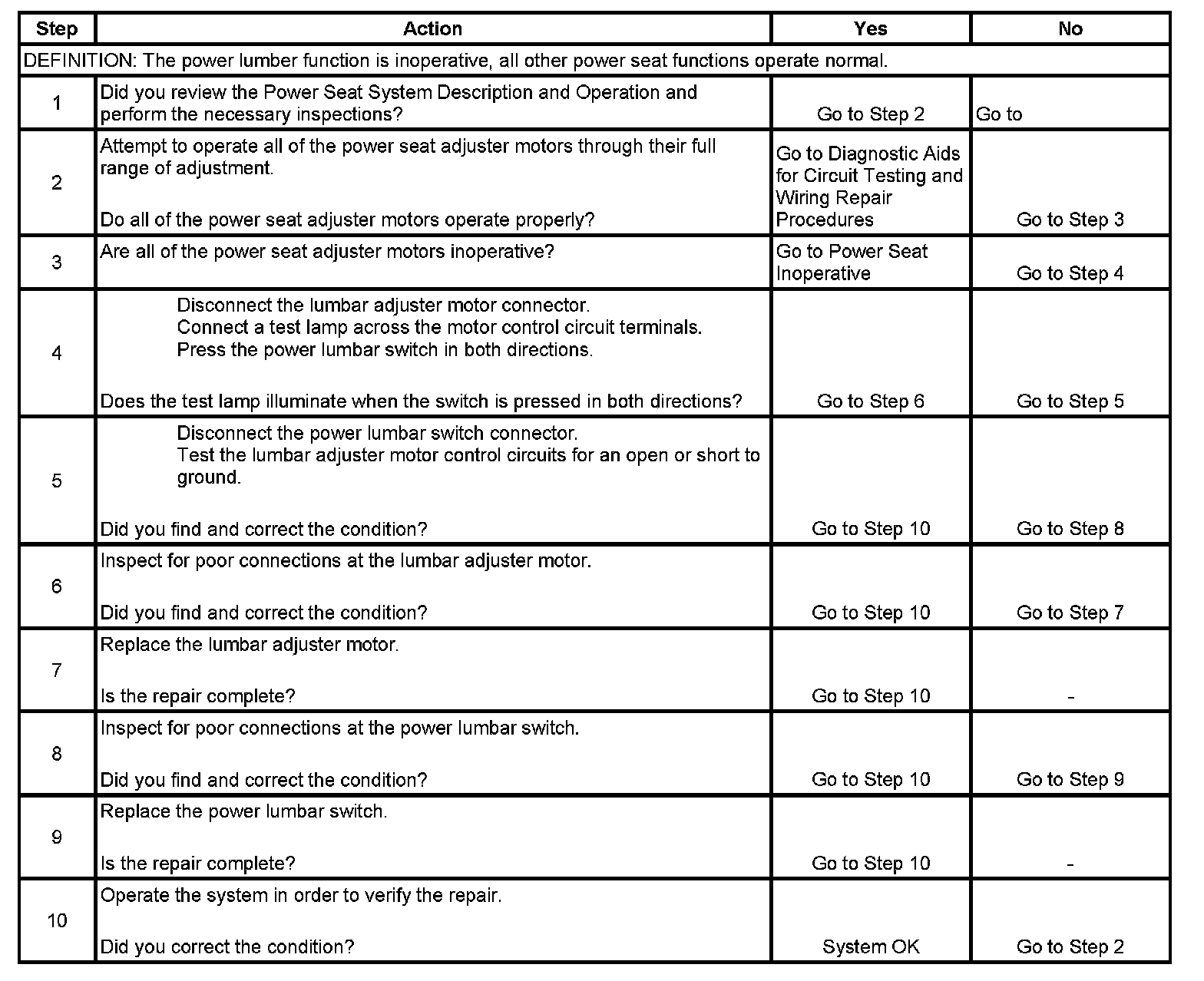 Lumbar Support Inoperative