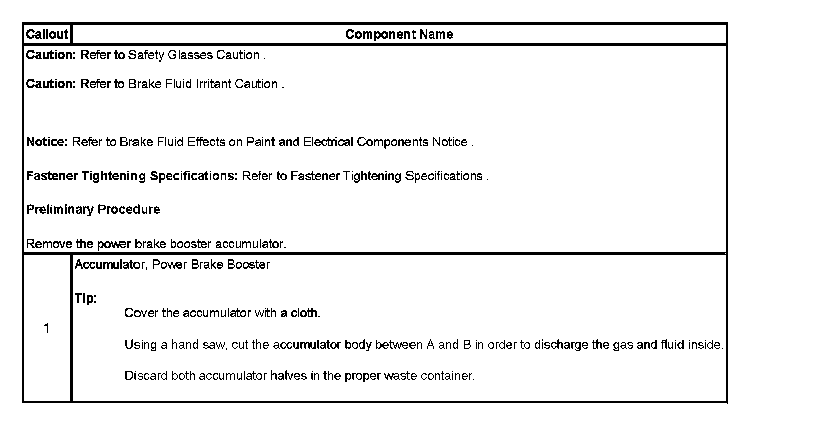 Power Brake Booster Pump Fluid Accumulator Disposal