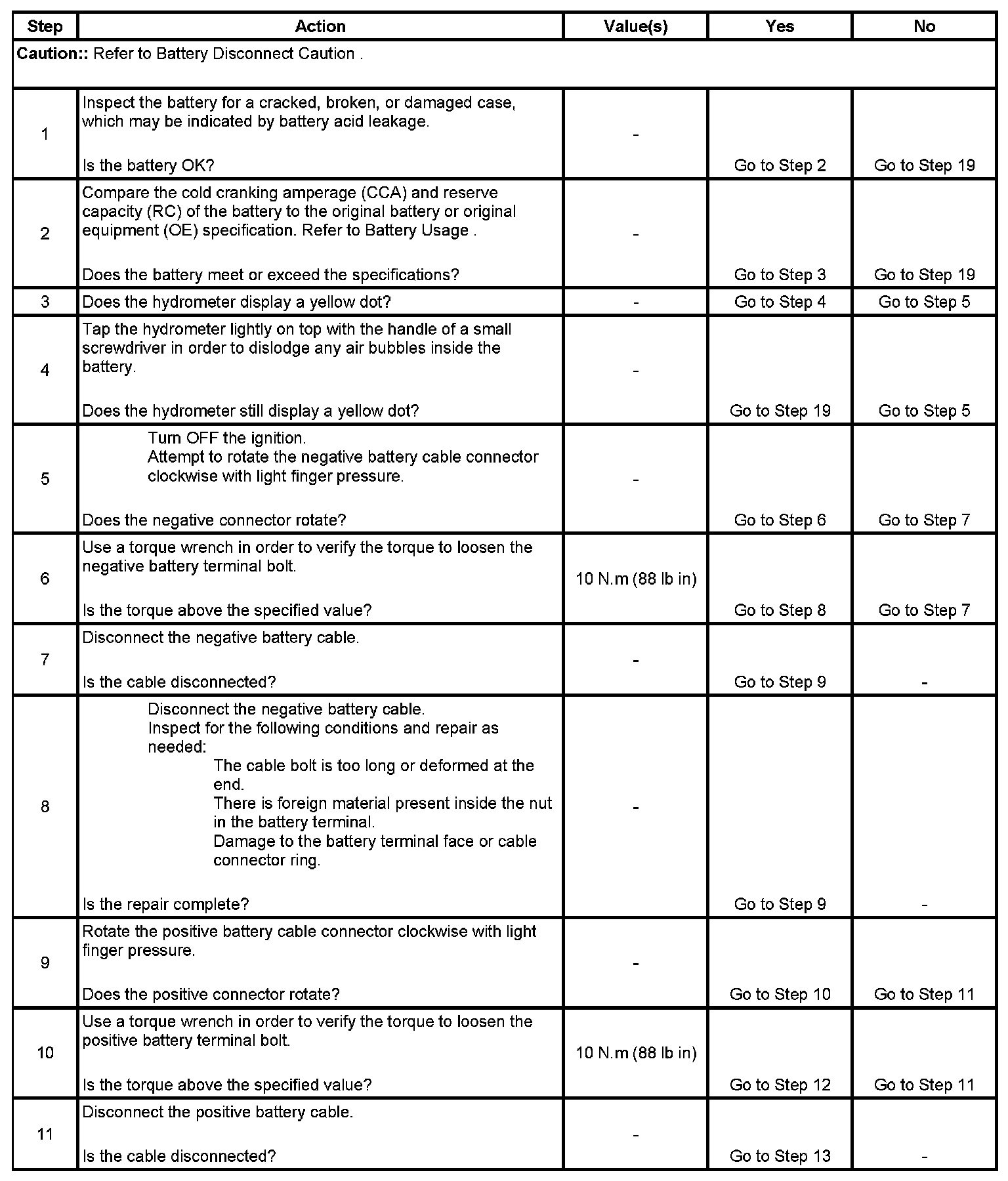 * If the tester displays a REPLACE BATTERY or BAD CELL-REPLACE result for a battery tested in the vehicle with the battery cables connected, perform the following steps: