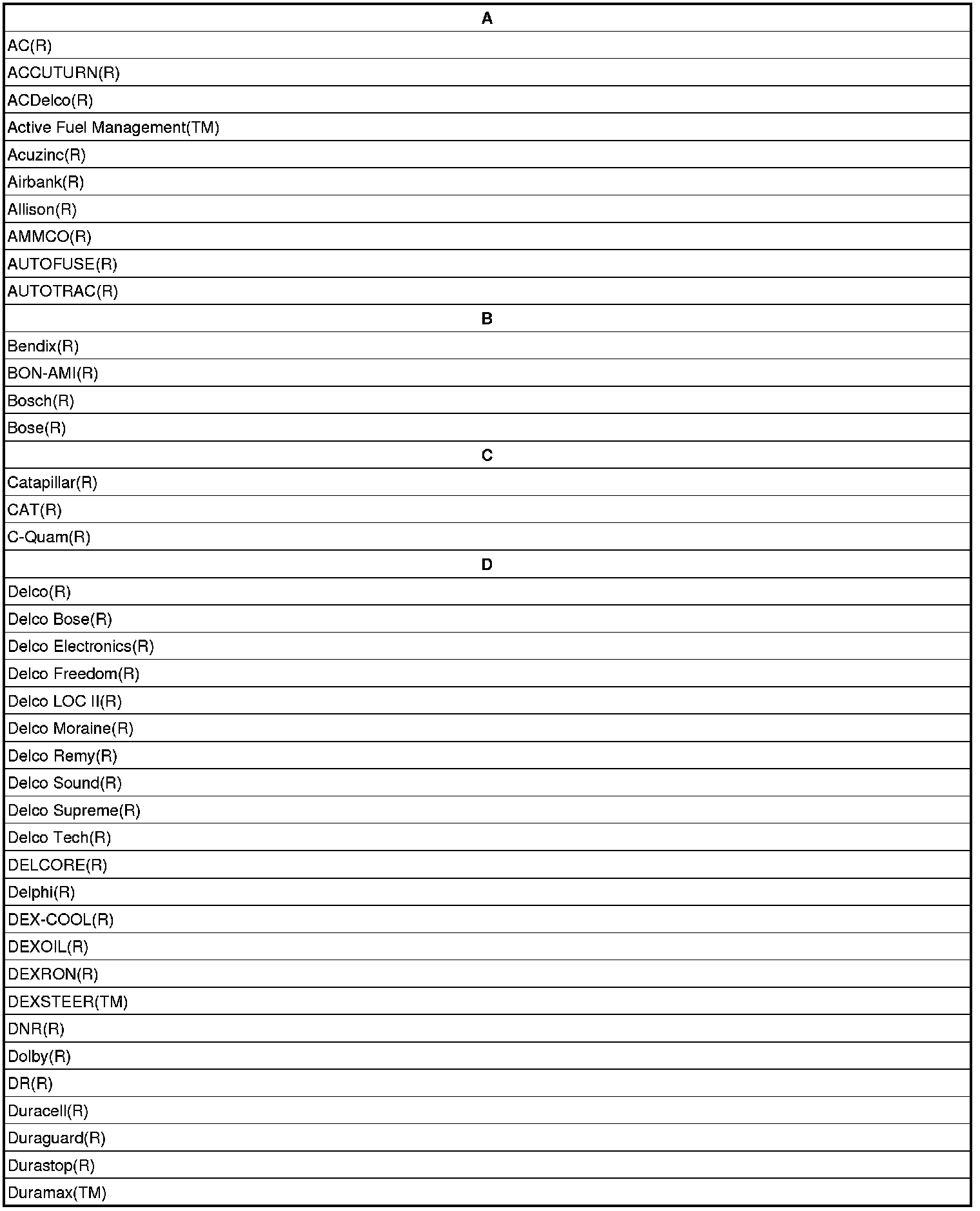 Listed below are Registered Trademarks ((R)) or Non-Registered Trademarks ((TM)) which may appear in this service manual.