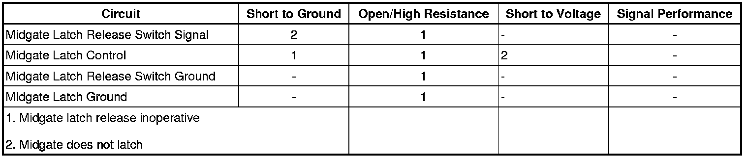 If both latches will not release using either release switch, refer to Midgate Module Circuit Test.