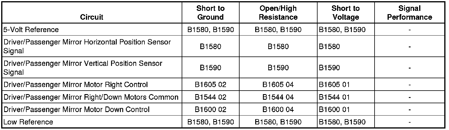 • If the vehicle is not equipped with RPO DL3/DR4, refer to Mirror Motor Circuit Malfunction.