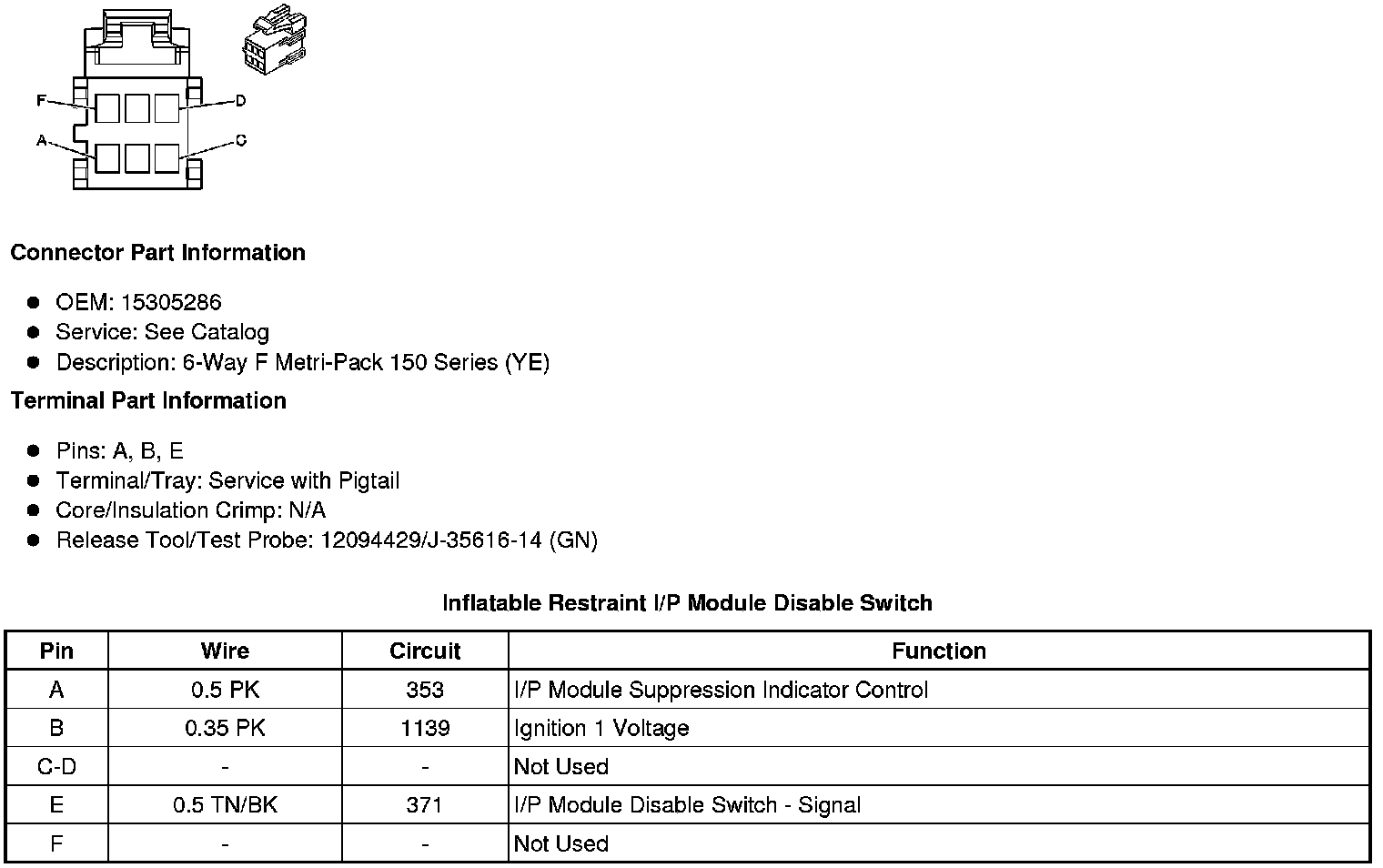Inflatable Restraint I/P Module Disable Switch