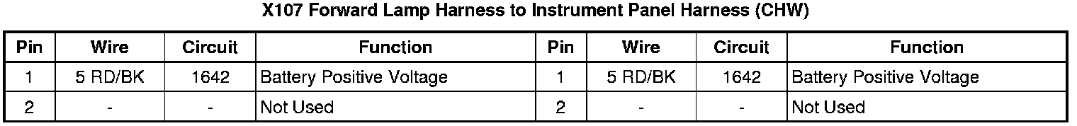 X107 Forward Lamp Harness to Instrument Panel Harness (CHW)