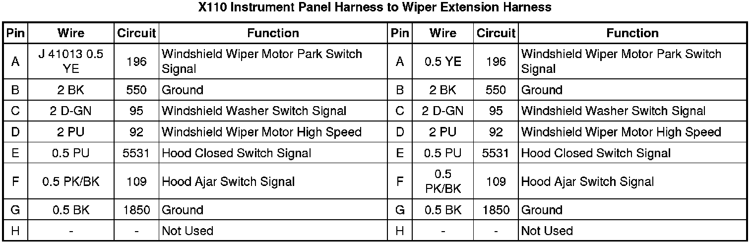 X110 Instrument Panel Harness to Wiper Extension Harness