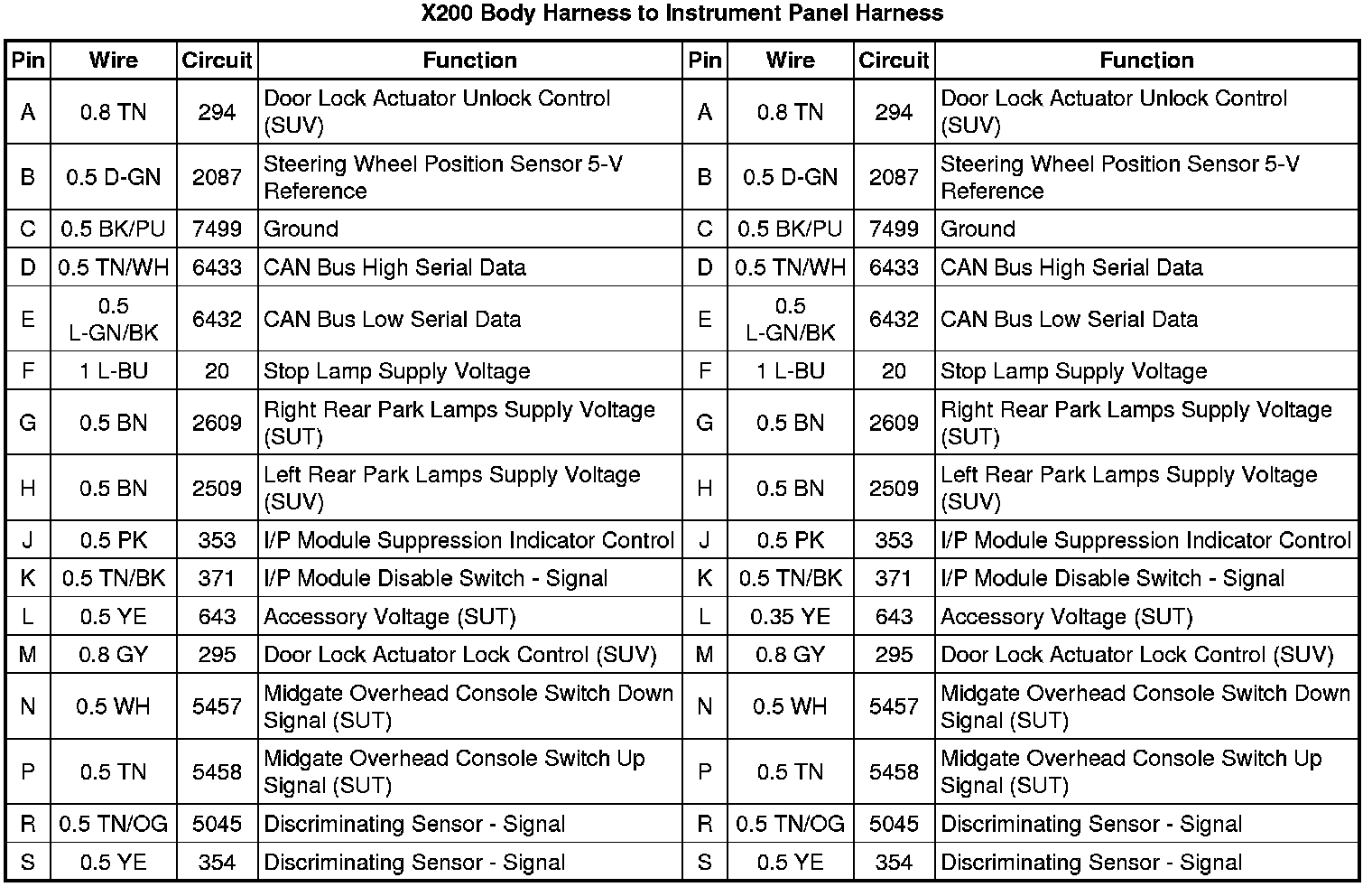 X200 Body Harness to Instrument Panel Harness