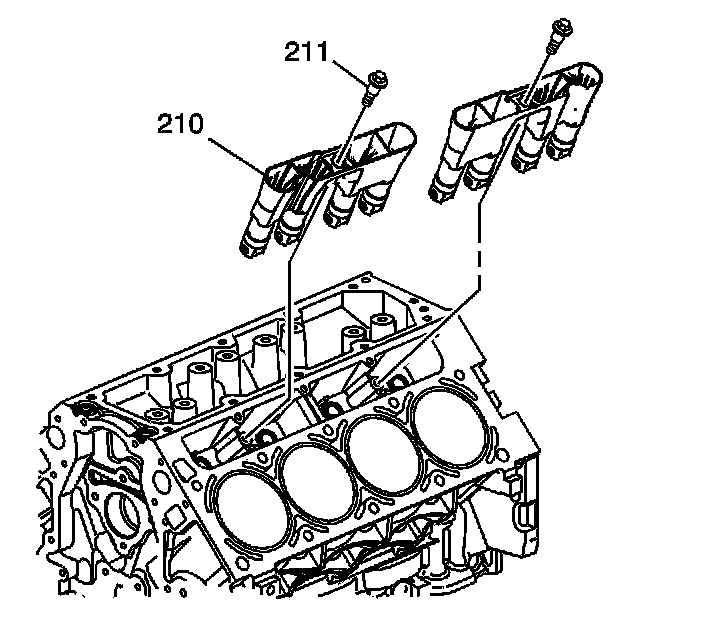 3. Install the valve lifters and guide assembly (210) to the engine block.