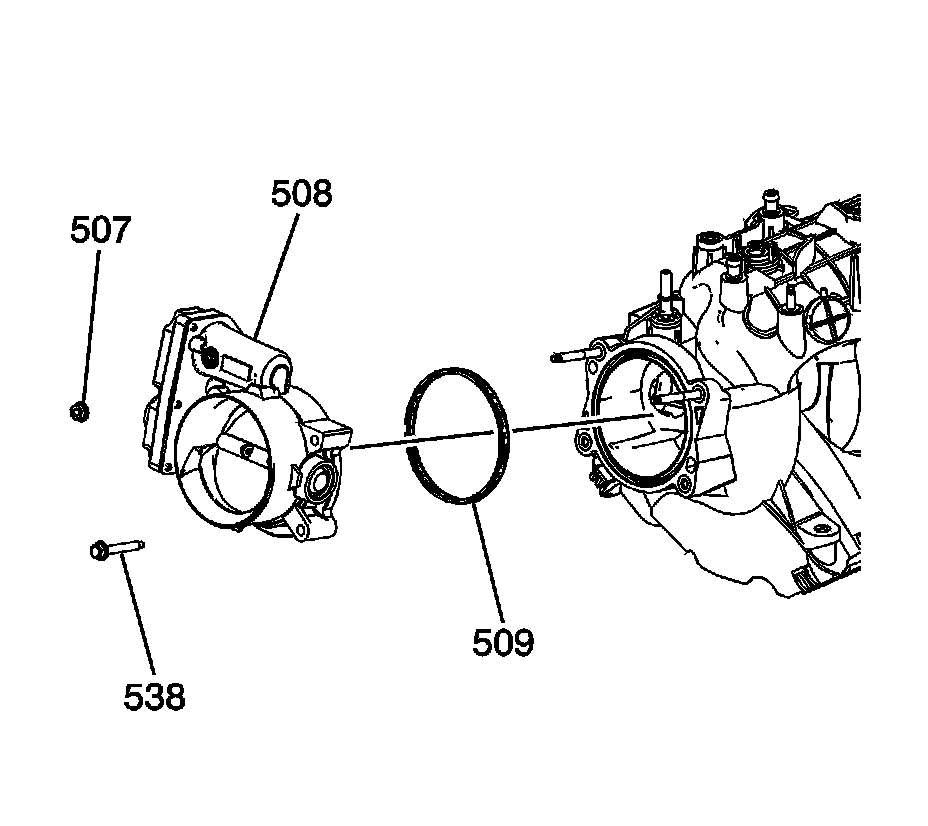 3. Install the throttle body (508), bolts (538), and nuts (507).