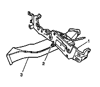 3. Remove the air outlet duct-rear (3) from the console support bracket (1).