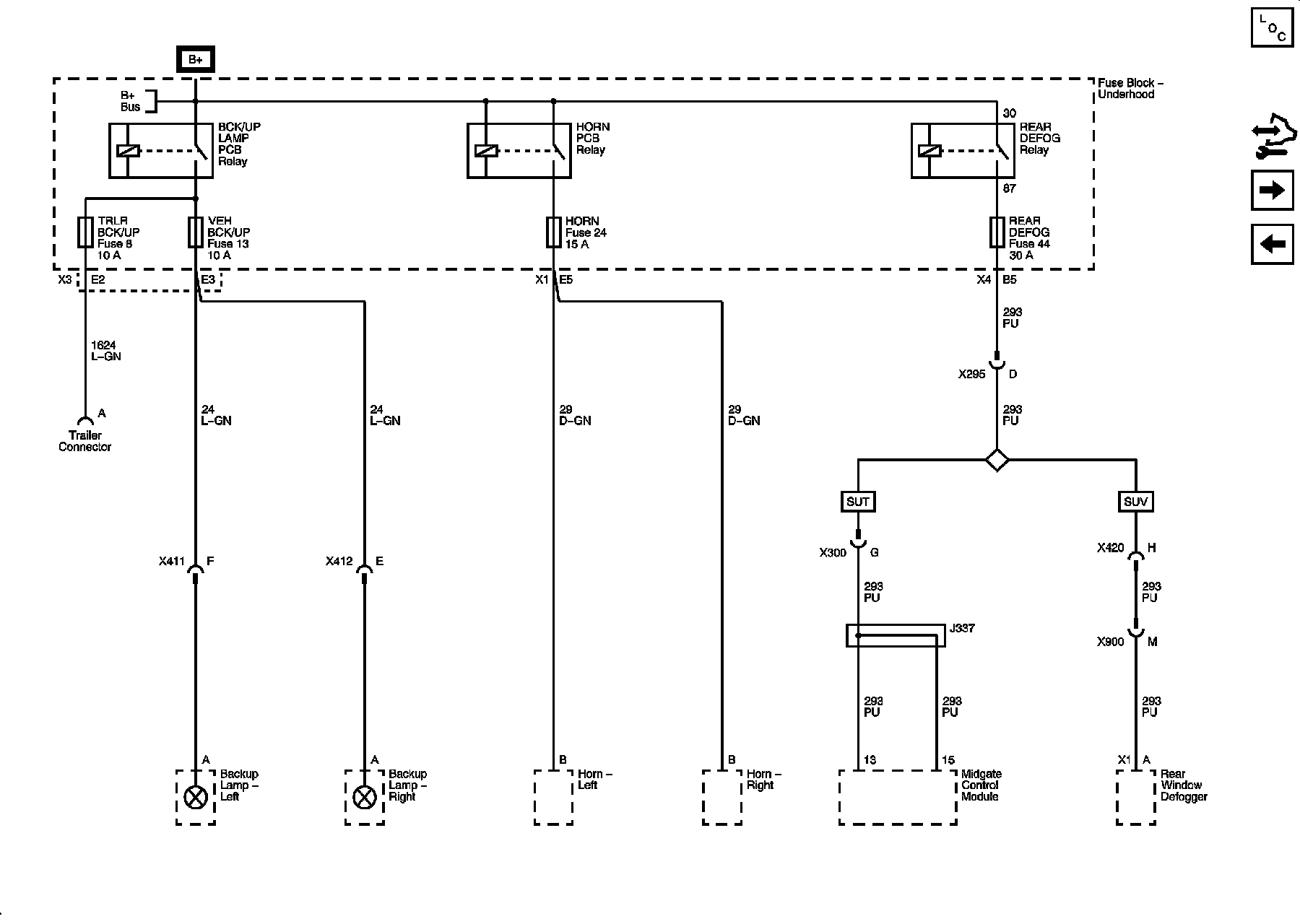 VEH BCK/UP, HORN and REAR DEFOG Fuses