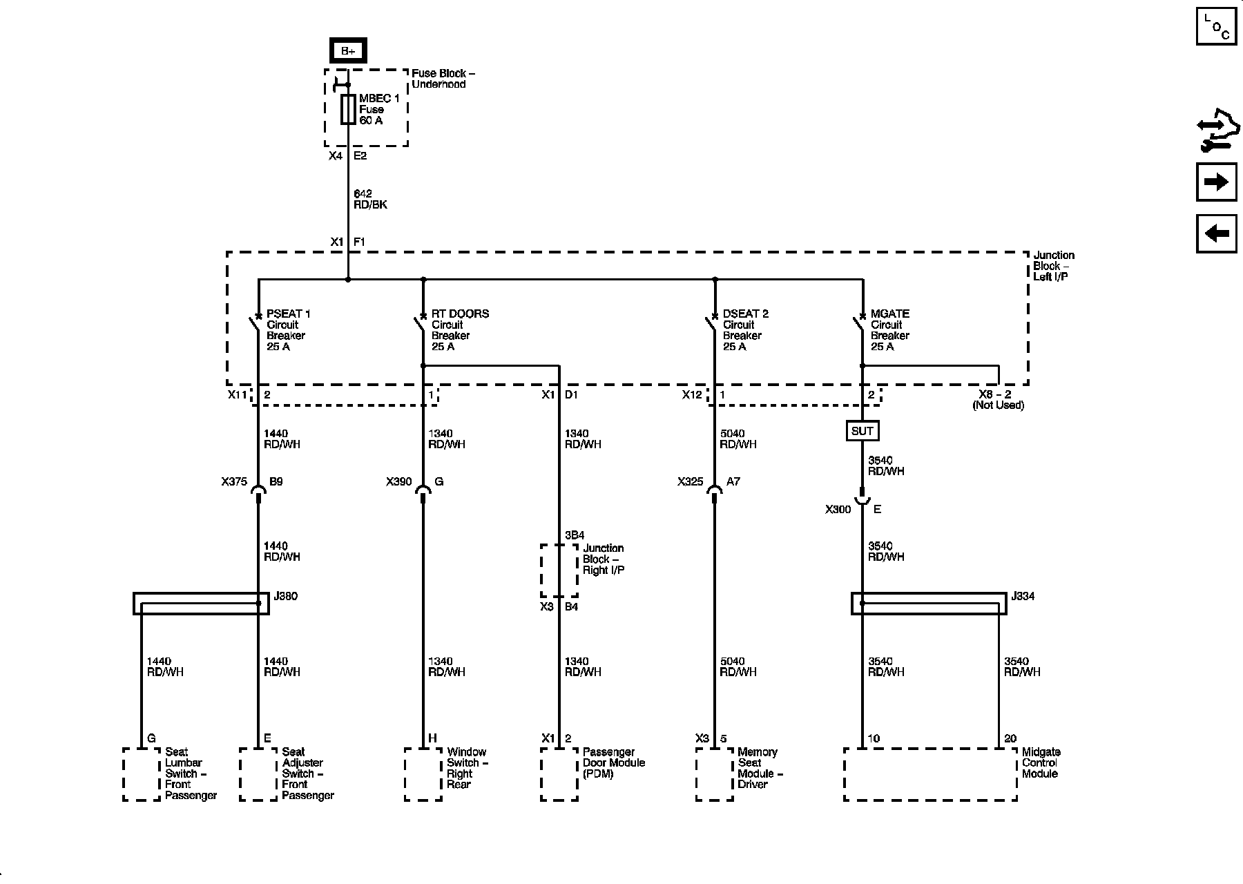 MBEC 1 Fuse and P SEAT 1, RT DOORS, D SEAT 2 and MGATE Circuit Breakers