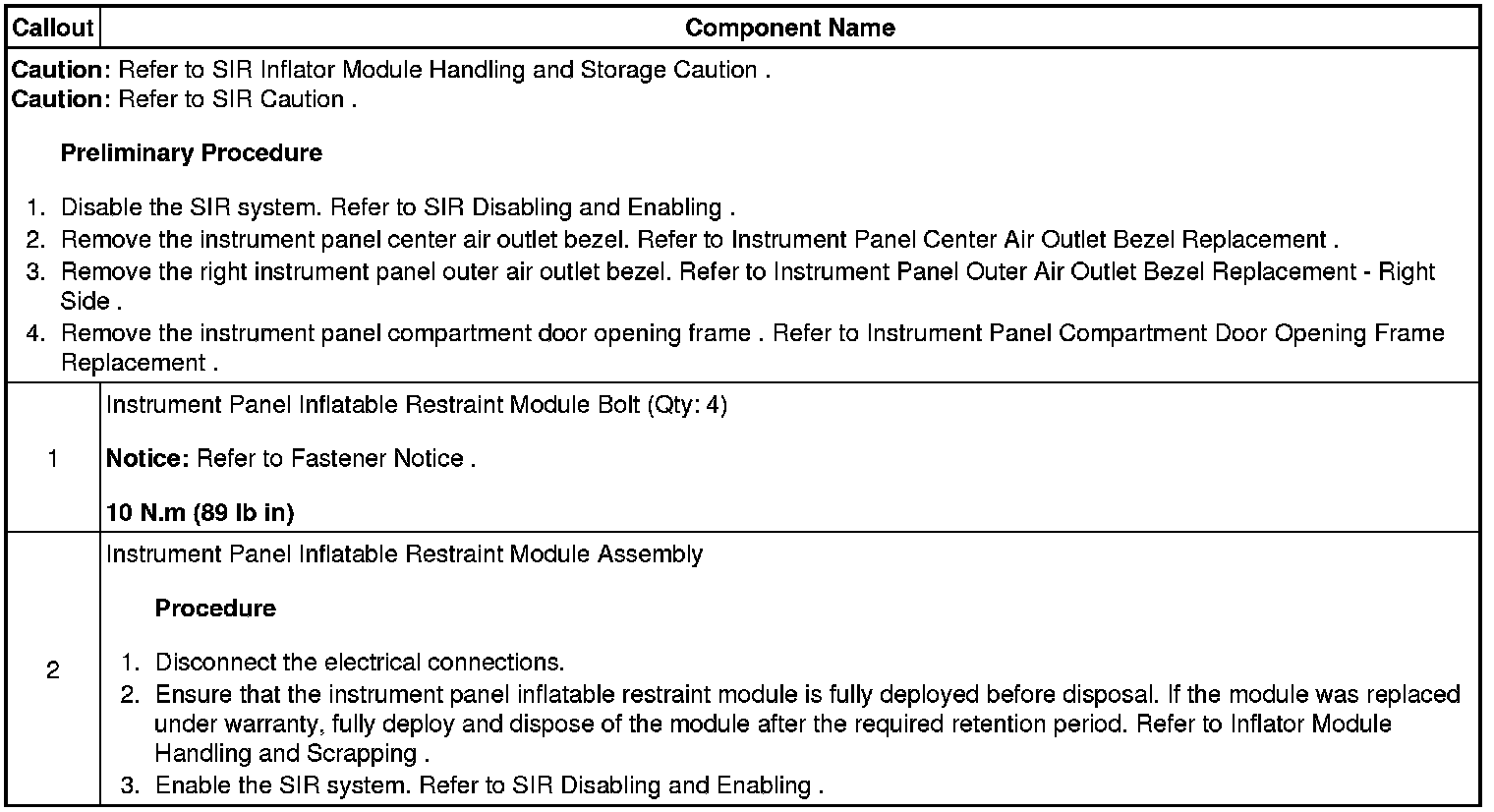 Inflatable Restraint Instrument Panel Module Replacement