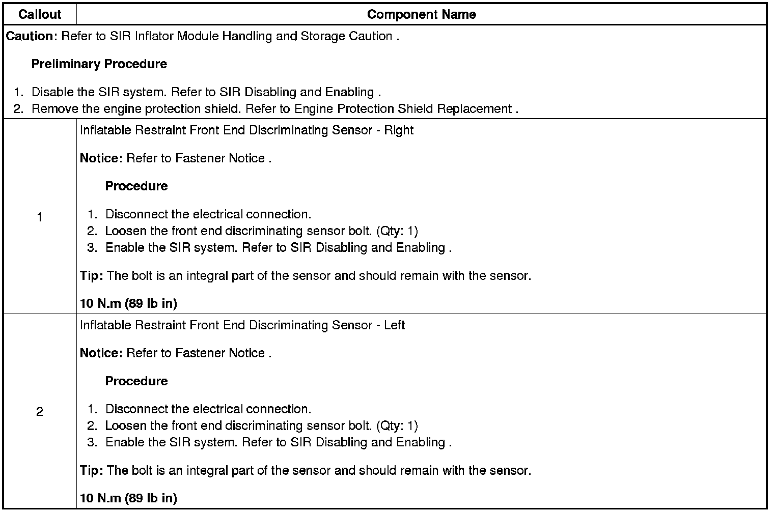 Inflatable Restraint Front End Sensor Replacement