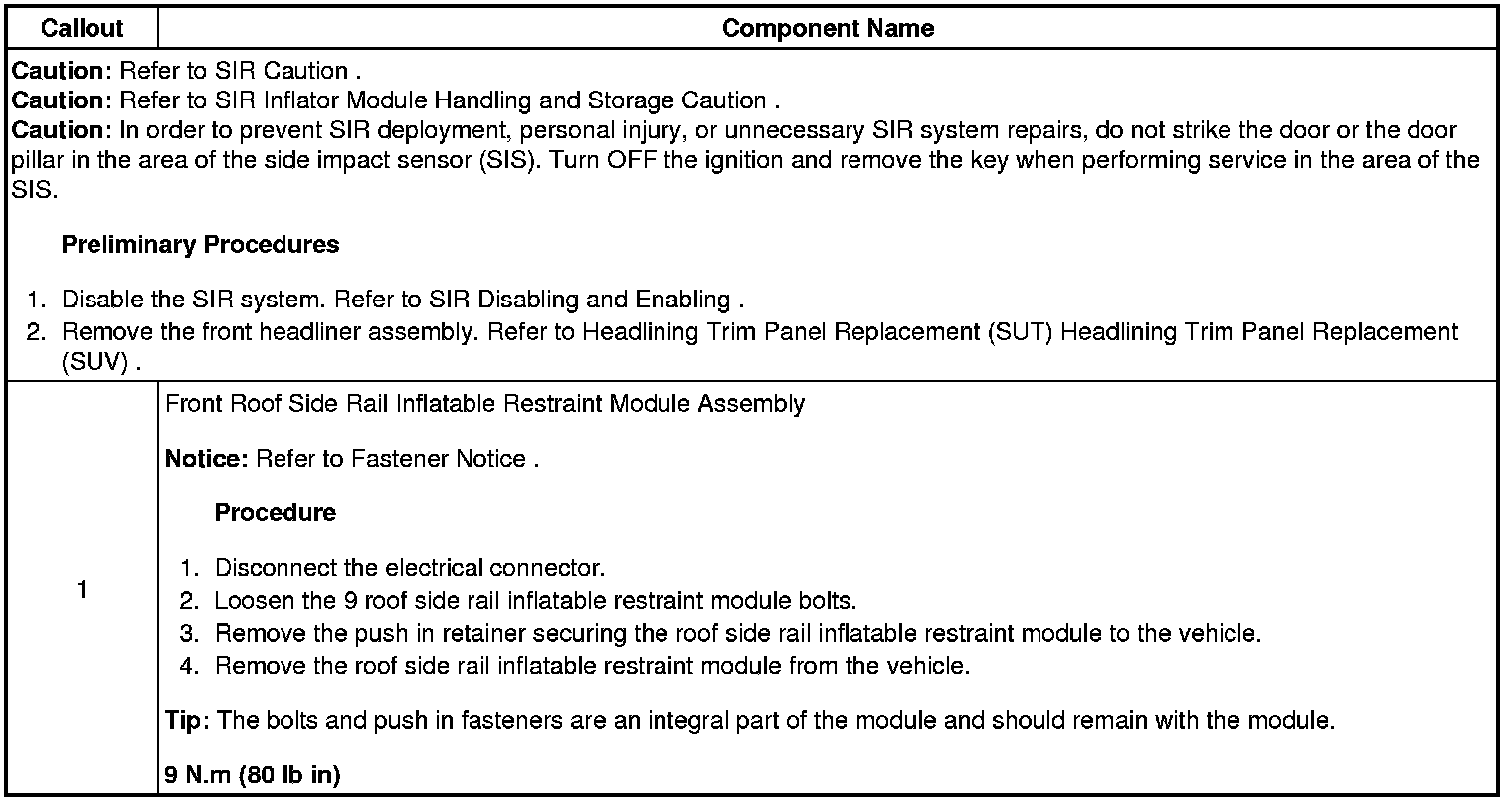 Roof Side Rail Inflatable Restraint Module Replacement - Front