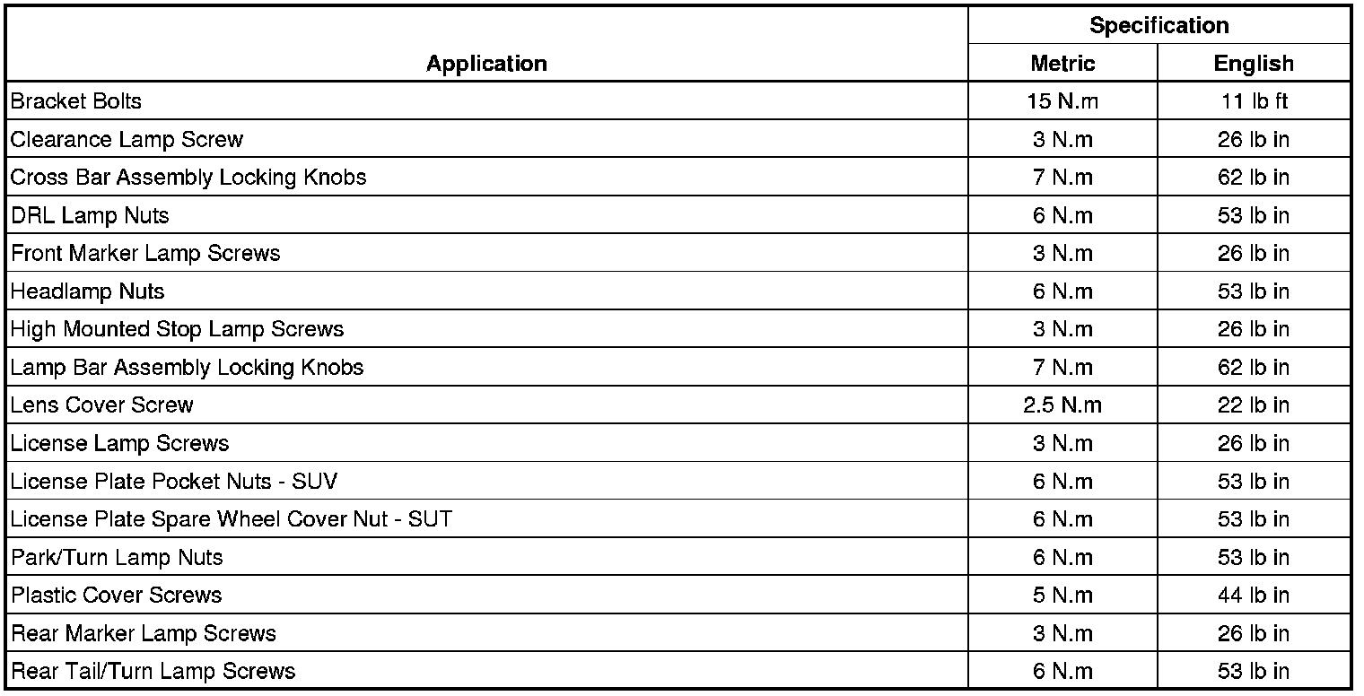 Fastener Tightening Specifications
