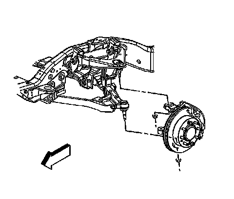 2. Remove the tire and wheel. Refer to Tire and Wheel Removal and Installation (Service and Repair) .