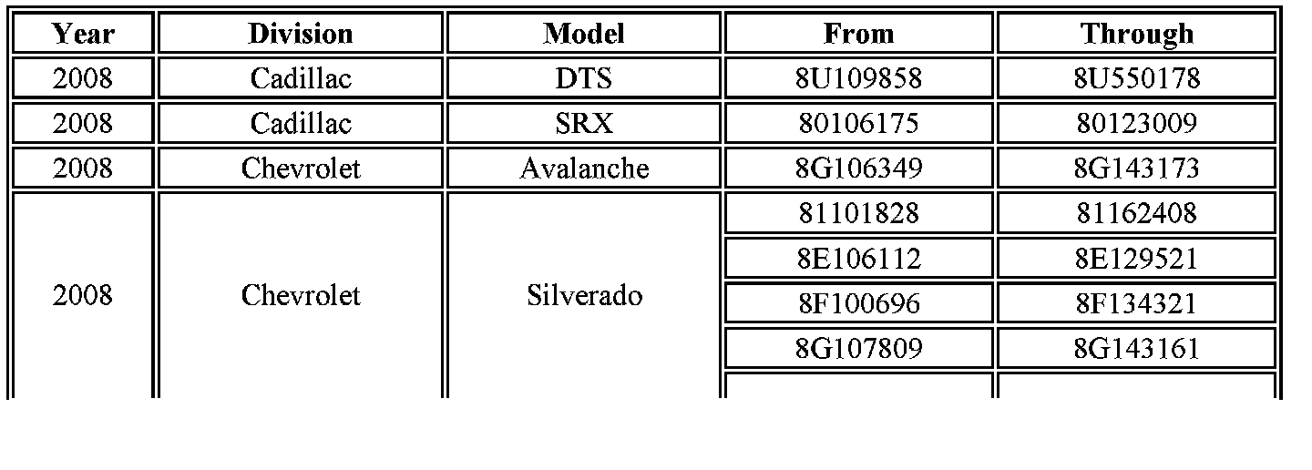 Dealers are to confirm vehicle eligibility prior to beginning repairs by using the GM Vehicle Inquiry System (GMVIS). Not all vehicles within the above breakpoints may be involved.