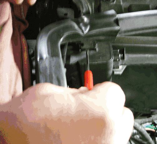 3. Remove the windshield washer solvent heater assembly from the assembly bracket using a small flat blade screwdriver.
