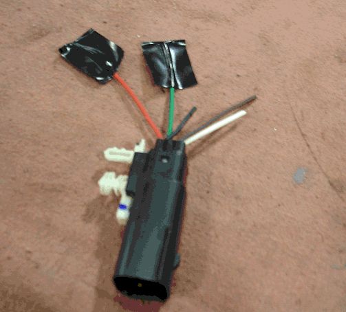 6. Cut the five-wire connector from the windshield washer solvent heater assembly. Vary the length of the five wires on the connector.