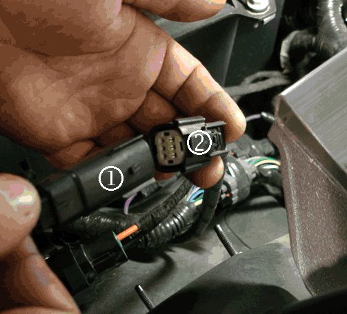 11. Connect the large two-wire connector (1) to the body harness (2).