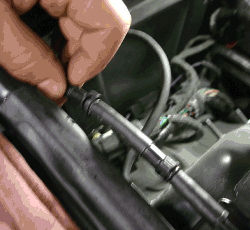 15. Route and secure windshield wiper solvent hose along passenger side front fender.