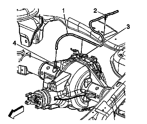 7. Disconnect the rear axle vent tube (1).