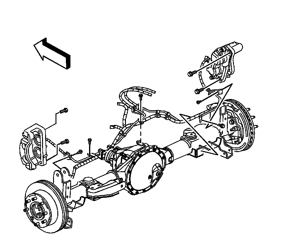 9. Install the caliper and bracket assemblies to the rear axle.