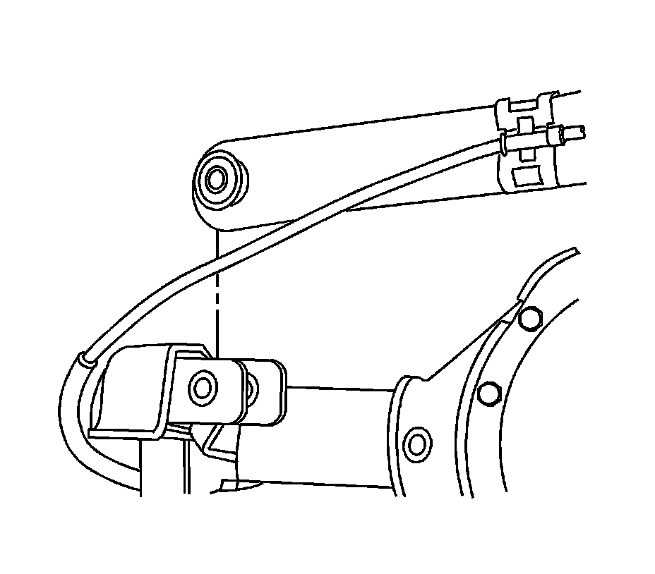Notice: Support the brake caliper with heavy mechanic wire, or equivalent, whenever it is separated from its mount and the hydraulic flexible brake hose is still connected. Failure to support the caliper in this manner will cause the flexible brake hose to bear the weight of the caliper, which may cause damage to the brake hose and in turn may cause a brake fluid leak.