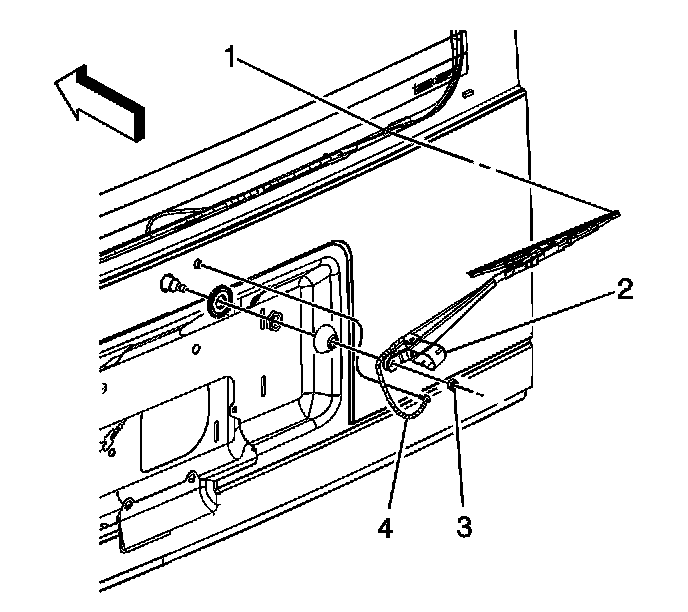3. Remove the nut (3) retaining the wiper arm to the wiper motor.