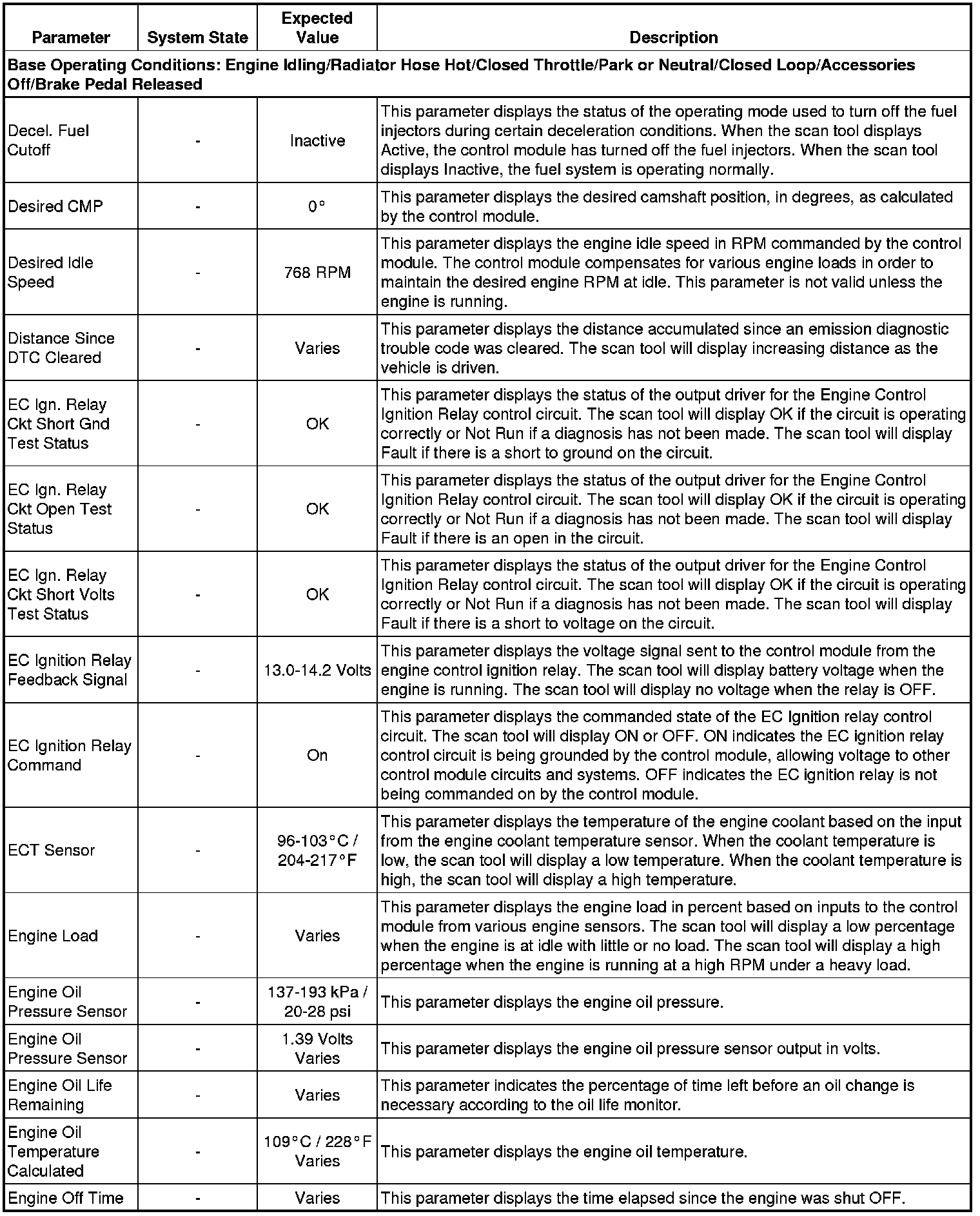 The Engine Control Module Scan Tool Data List contains all engine-related parameters that are available on the scan tool. The list is arranged in alphabetical order. A given parameter may appear in any one of the data lists, and in some cases may appear more than once, or in more than one data list in order to group certain related parameters together.
