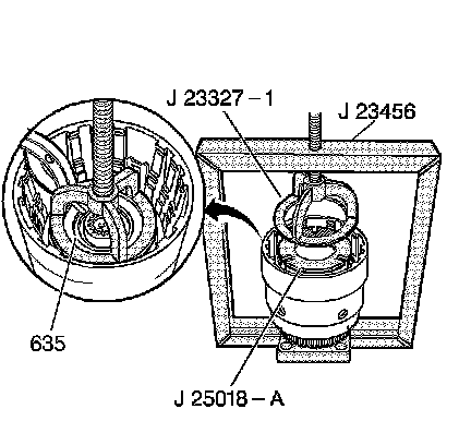 adapter , and compress the overrun clutch spring assembly using J 23456 - clutch pack compressor.