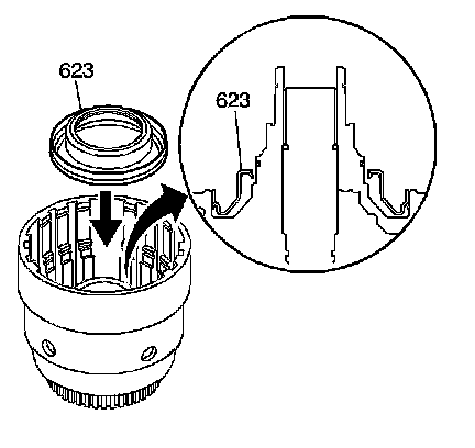 3. Install the 3rd and 4th clutch piston (623) into the input housing.