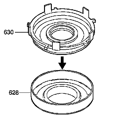 6. Install the forward clutch piston (630) into the forward clutch housing (628).