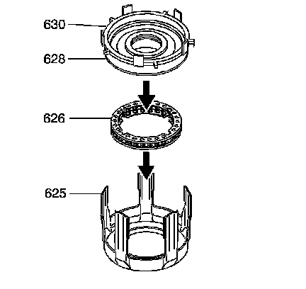 7. Install the 3rd and 4th spring assembly (626) into the 3rd and 4th clutch apply ring (625).