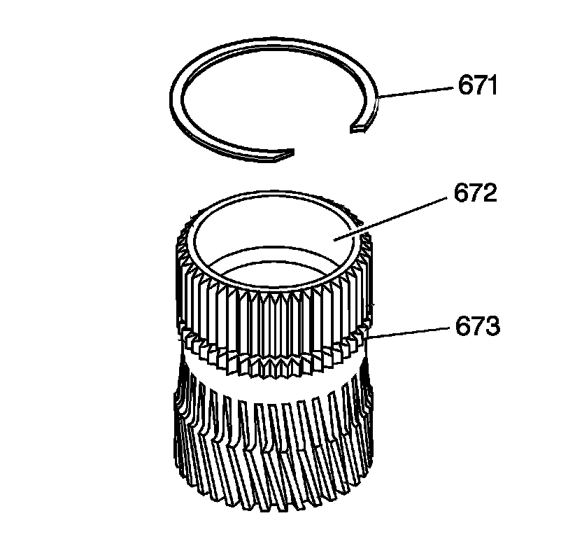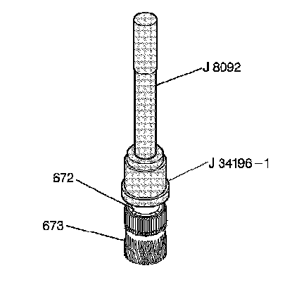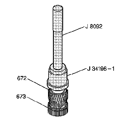 2. If the reaction sun gear bushing (672) needs replacement, use J 34196-1 which is part of kit J 34196-B - bushing service set with J 8092 - driver handle to remove the reaction sun bushing (672) from the reaction sun gear (673).