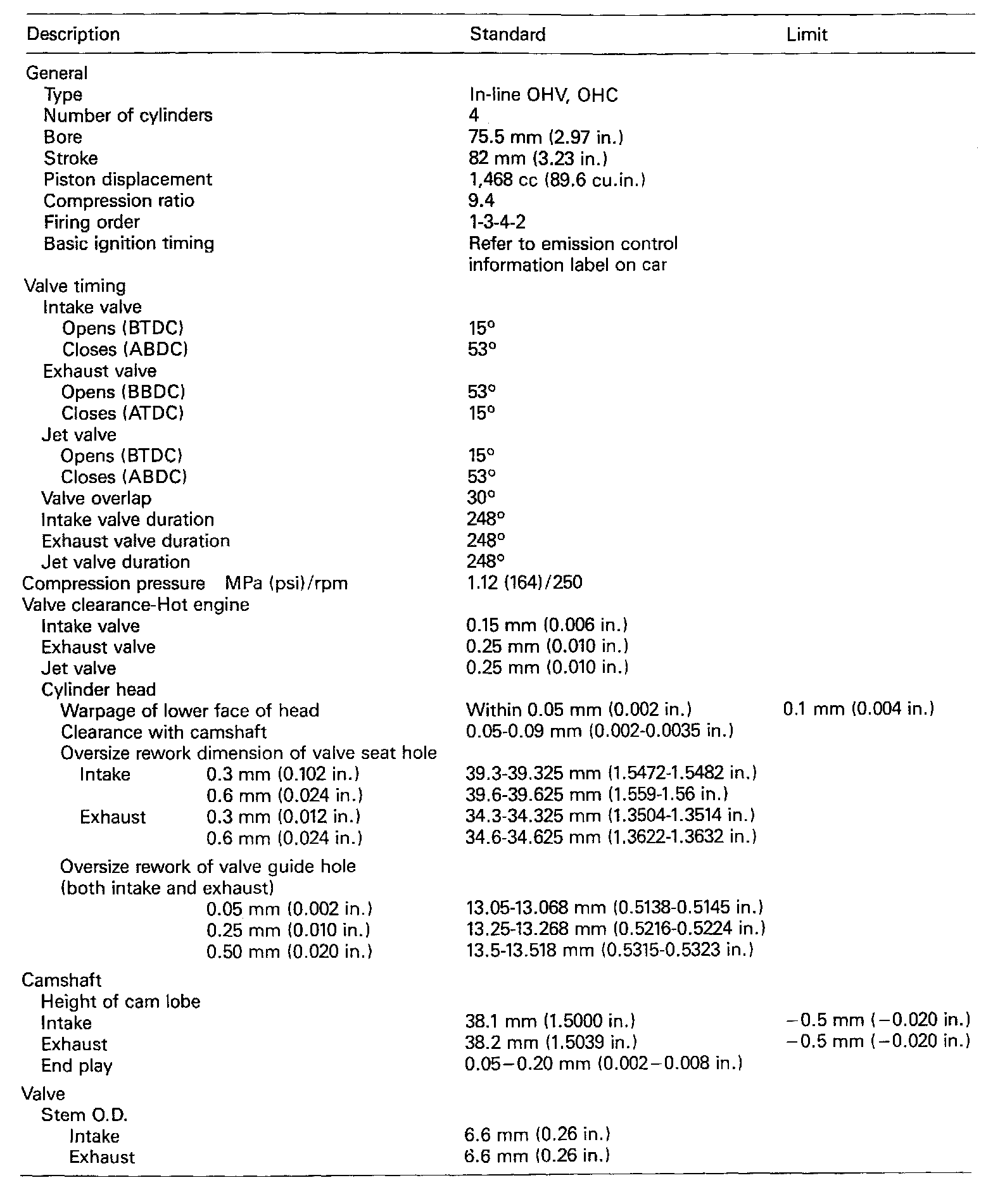 Excel L4-1468cc 1.5L SOHC (8 VALVE)