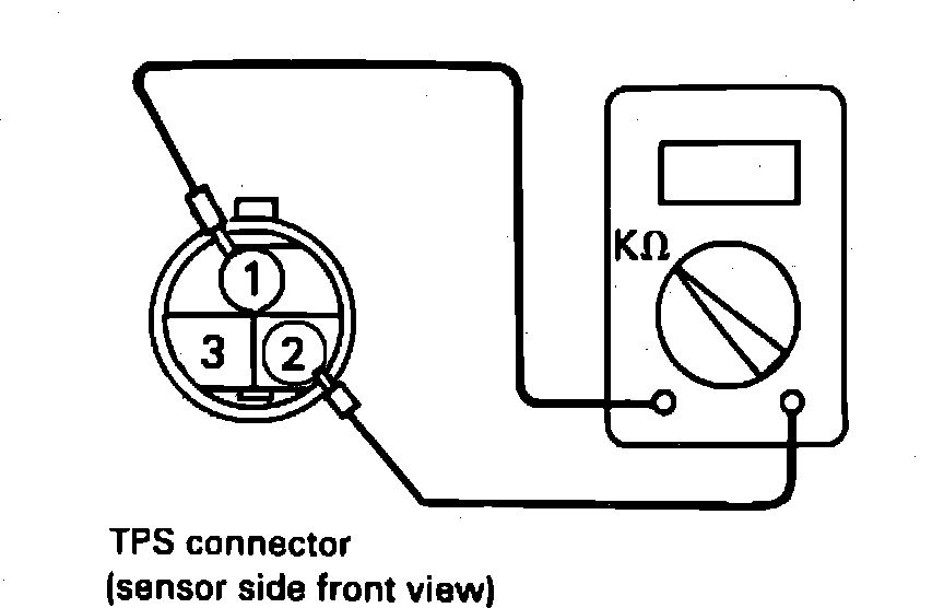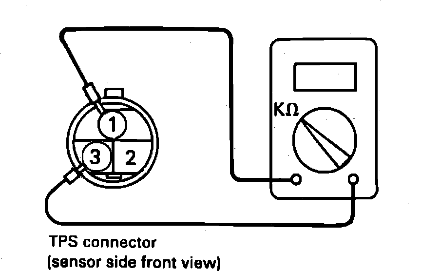 2. Measure the resistance between terminals 1 and 3 of the throttle position sensor connector.