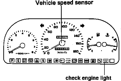 5. If the voltmeter remains steady at reference voltage, there is either an open circuit between the VSS and the ECU, or the VSS is faulty. Before replacing the VSS investigate the possibility of an open circuit in the VSS or instrument cluster grounds.