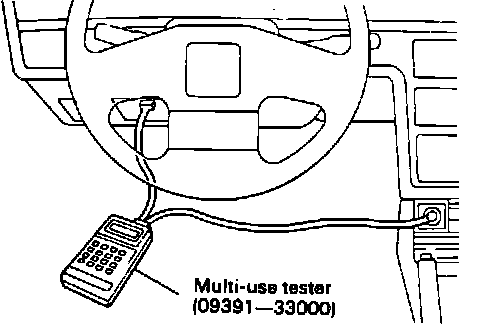 1. Connect a multi-use tester 09391-33000 to cigarette lighter socket and self-diagnosis check connector, Fig. 4.